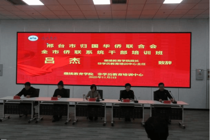 2025年11月4日至7日,由邢台市归国华侨联合会主办、邢台学院继续教育学院承办的“全市侨联系统干部培训班”在我校顺利举行。本次培训紧扣深入学习贯彻党的二十届四中全会精神及河北省第十一次侨代会部署,围绕深化“四型”市直机关建设,全面提升侨联干部政治素养与履职能力,来自各县(市、区)统战部、侨联组织、侨胞之家及市侨联机关的30名学员参加培训。